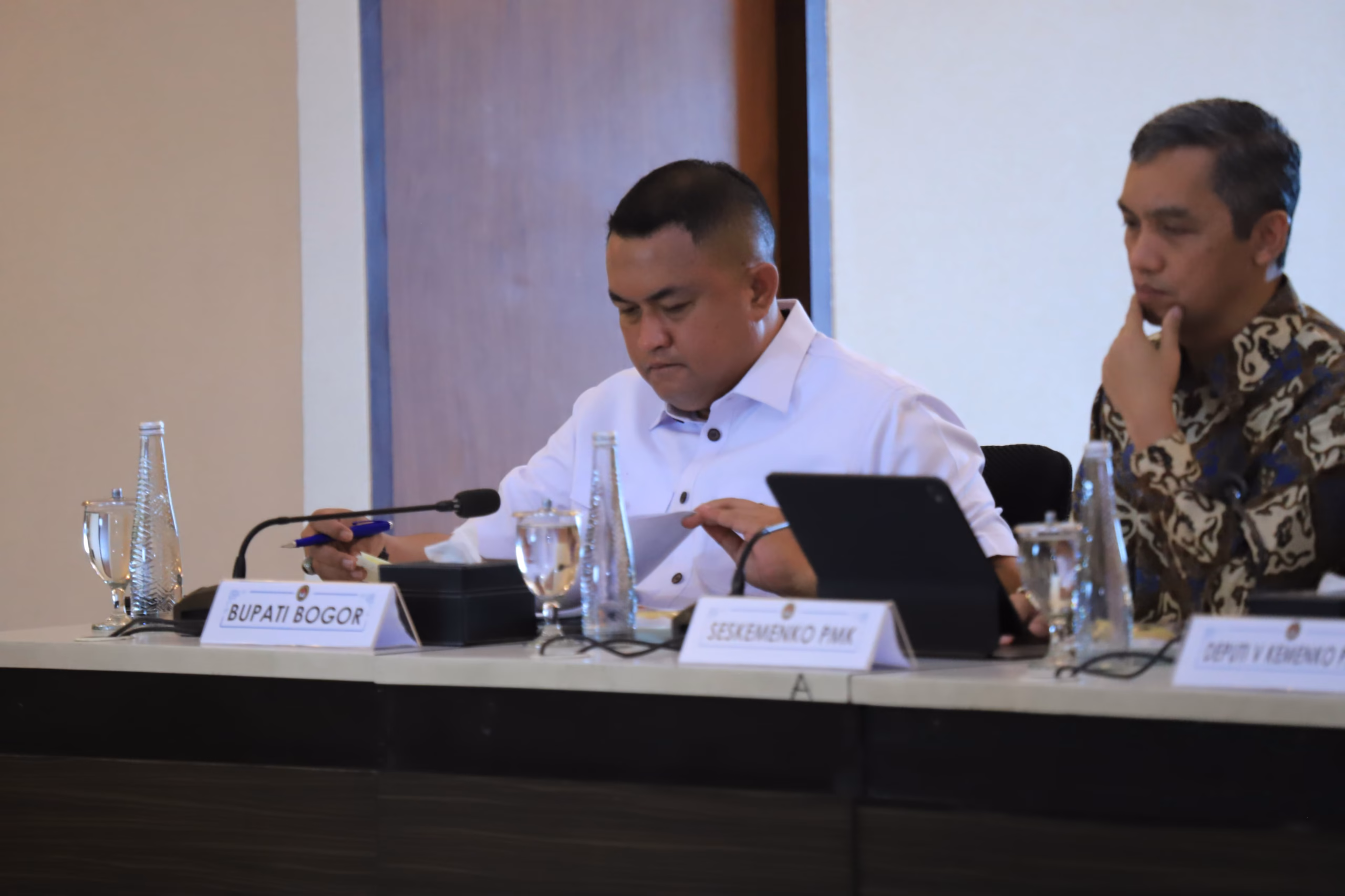 RuangBogor.id -Bupati Bogor, Rudy Susmanto, menghadiri Rapat Tingkat Menteri membahas upaya pemulihan lahan serta langkah antisipasi banjir dan longsor di wilayah hulu Sungai Ciliwung, bertempat di Gedung Kementerian Koordinator Bidang Pembangunan Manusia dan Kebudayaan (Kemenko PMK), Jakarta Pusat, Kamis (9/1/26).
