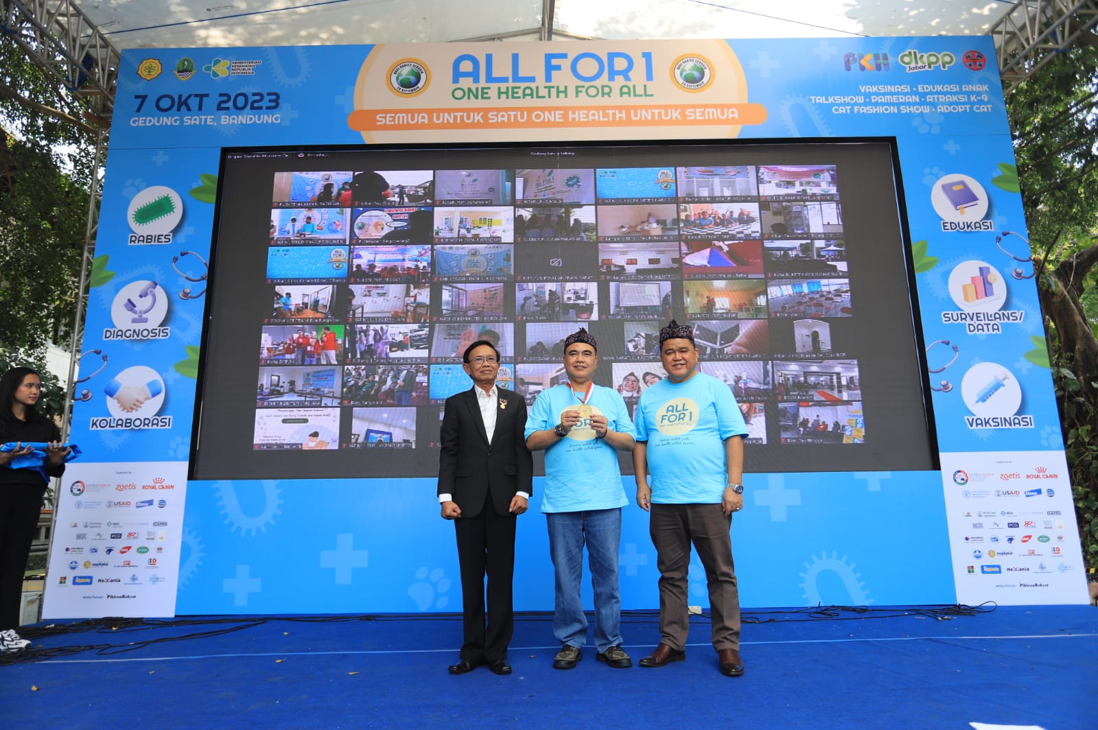 KOTA BANDUNG, Ruangbogor.id – Peringatan Hari Rabies Sedunia 2023 Tingkat Nasional berlangsung di Halaman Gedung Sate, Kota Bandung, Sabtu (7/10/2023). Peringatan tersebut bertema “All for One, One Health for All.”