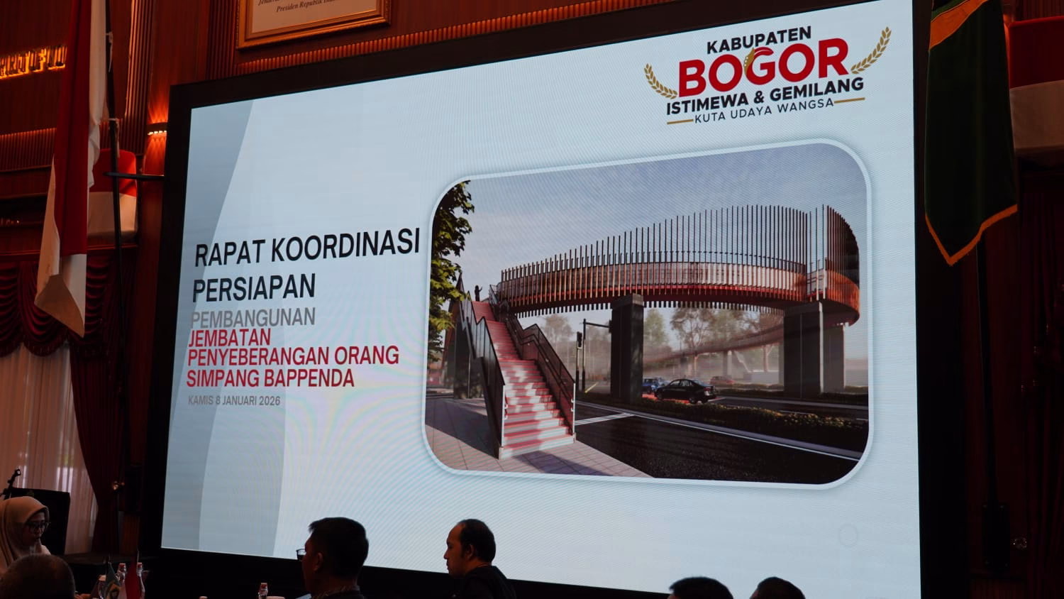 RuangBogor.id – Bupati Bogor, Rudy Susmanto, memulai langkah persiapan pembangunan Jembatan Penyeberangan Orang (JPO) di Simpang Bappenda, yang dibahas melalui rapat koordinasi bersama jajaran perangkat daerah terkait yang berlangsung di Aula Soekarno Hatta, Pendopo Bupati Bogor, pada Kamis (8/1/26).